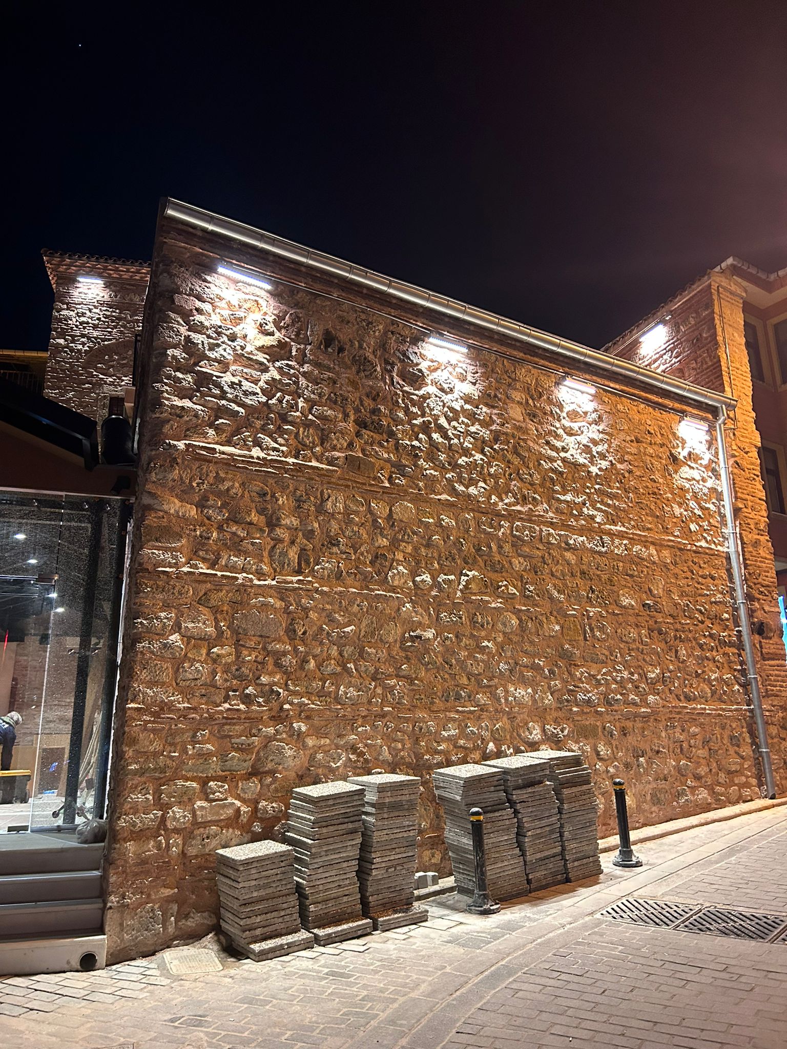 Tarihi yapıda dış cephe aydınlatmasında kullanılan wallwasher armatürler ham gövde renkleri hali ile, tarihi yapı ve cevre faktörleri ön planda tutularak değerlendirilen özel lümen değerleri ve açılarıyla düşünülmüştür. Giriş mahallerinde harici aydınlatma olarak loş ve keskin efekt veren 360 derece özel aplikler kullanılmıştır.
